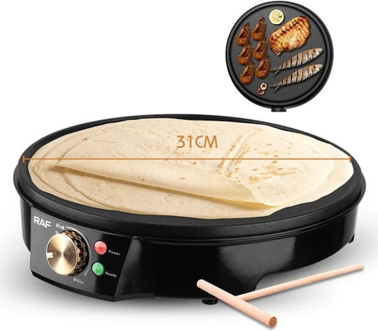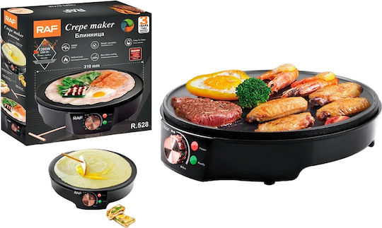 RAF R.528 je električni aparat za palačinke sa snagom od 1200W i velikom površinom za pečenje prečnika 31 cm. Idealan je za pripremu tankih palačinki, tortilja, omleta i drugih ukusnih obroka. Zahvaljujući neljepljivoj površini i podesivoj temperaturi, palačinke se ravnomjerno peku i lako okreću.