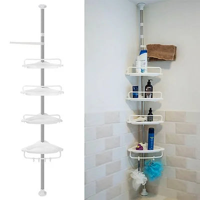 Podesiva po visini: Ova polica je prilagodljiva i možete je podešavati po visini od 220 cm do 260 cm kako biste je prilagodili svojim potrebama. Na oba kraja ima ljepljive djelove koji se sigurno pričvršćuju na plafon i kadu ili pod.